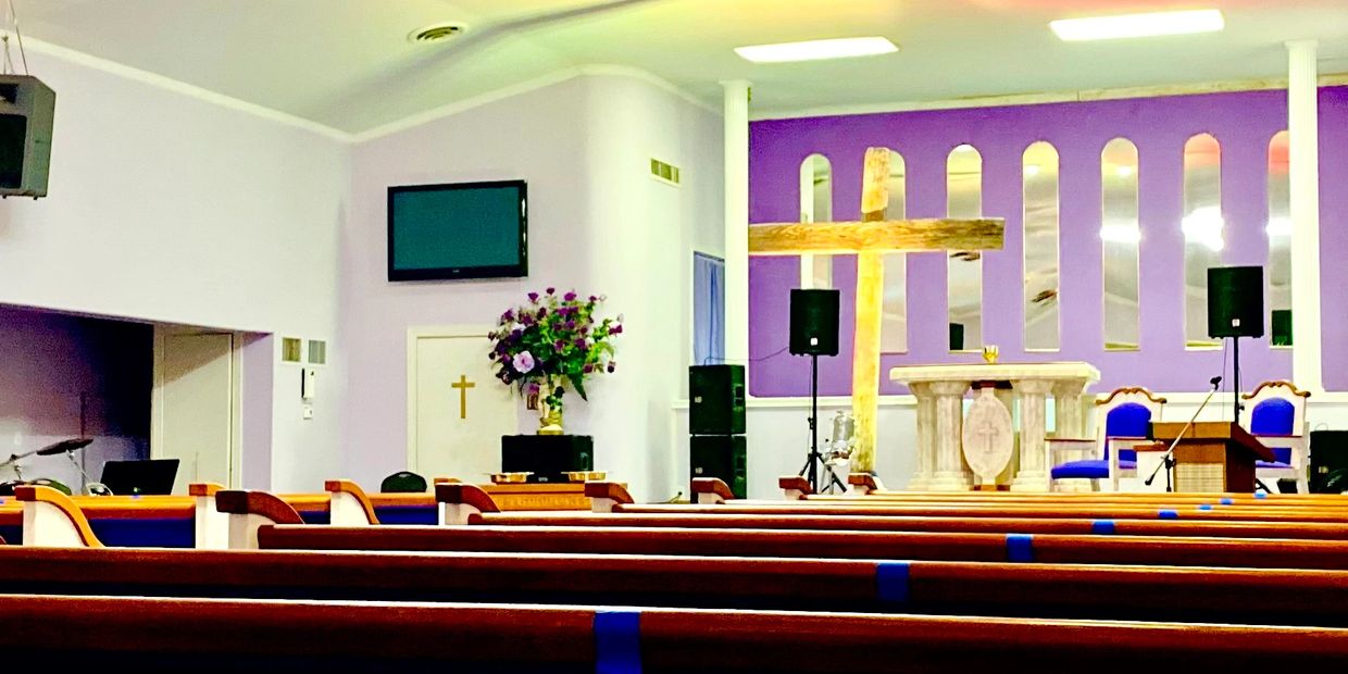 We worship in a beautiful sanctuary that is spacious allowing room for social distancing. Traditional pews provide comfortable seating. Our church building is designed in the shape of a cross, reminding us of the reason we gather.